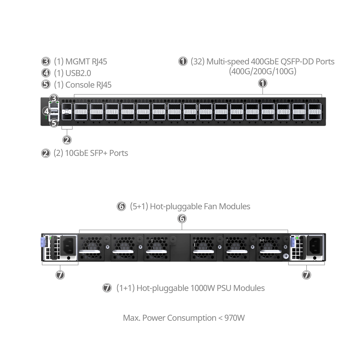 The CX732Q is a 32-port 400G switch designed for the super spine layer in the next-generation cloud data center CLOS network. 400G QSFP-DD 32-port switch offers low latency and boasts a line-rate L2/L3 up to 12.8Tbps switching performance by a powerful Marvell Teralynx chip. This switch supports ROCEv2 and EVPN Multi-homing, with Enterprise SONiC NOS pre-installed. With high scalability, flexibility, and security, the 32-port network switch is ideal for AI, ML, data centers, high-performance computing(HPC), and content delivery networks(CDNs).